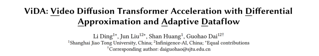 2025年1月20日,集成电路设计自动化领域的国际传统顶级会议之一的ASP-DAC(Asia and South Pacific Design Automation Conference, 亚洲及南太平洋设计自动化会议)在日本东京召开。在ASP-DAC成立30周年之际,今年的前端最佳论文奖颁发给了《ViDA: Video Diffusion Transformer Acceleration with Differential Approximation and Adaptive Dataflow》——由无问芯穹与上海交通大学联合研究团队提出的视频生成软硬一体加速器,首次实现通过差分近似和自适应数据流解决VDiT生成速度缓慢瓶颈,推理速度相比A100提升高达16.44倍。